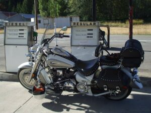 I went back to Koots Cycle three days later and met the proprietor Don. It was one of the best little shops I have ever been in. I quite like him – a man of honor and integrity. He gave me the owner’s name and number. I called him to find out he was in Saskatchewan until Jan 31. I bought it over the phone. When he returned we hashed out the details and it was mine. At the time I had no inkling of what my motorcycle would become. This would be the beginning of a quest that would lead me to a five-year world-wide bike trip! I kept it in Don’s shop and had him do some work on it. He restored it to original specs and I sold the after market pipes. He added the 3 headlights for night riding, a sissy bar to hold my trunk bag and put the stock pipes and air cleaner back on it.