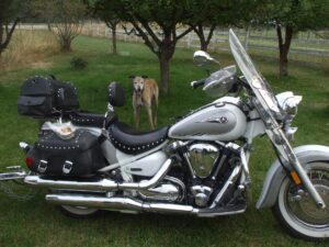 This is one of my Pals. Griffin be his name. He is a grand beast. Formerly a Speed Hound and now retired. He really belongs to Gary. There are a few retirees like Griffin and Gary has put on some miles with them around Osoyoos. This is Griffin’s retirement home. When he notices me coming down the driveway he still shows that speed Greyhounds are known for when they see a buddy coming to visit. Always good natured and pleasant Sir Griffin.