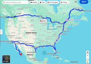 In long form; around BC, across Canada, around The Great Lakes,  Maritimes (Cabot Trail , Peggy’s Cove etc),  PEI.  My original plan was to leave third week of August taking five to six weeks to cross Canada West to East before crossing the border south. Across our common border, down the Eastern Seaboard to Key West. I thought I would pop over to Cuba and ride there for a month. I had no idea there is still a travel and trade embargo up. So back up Florida then across The Old Spanish Trail to The Pacific. Next down to Cabo for the winter.  Up Route 66 in the spring, hike The Grand Canyon, Death Valley, Monument Valley, around The Great Lakes again and back home to BC.